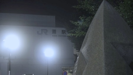 灘駅前は、静まりかえってモニュメントが寂しそうにたたずんでいました。